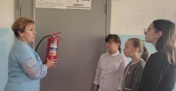 В рамках месячника безопасности учитель Шашина С.В. провела обучающее мероприятие «Знакомство с огнетушителем», целью которого было познакомить детей с основными средствами пожаротушения