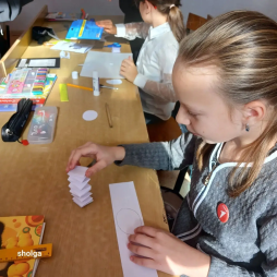 На занятиях кружка "Оригами" ребята изготовили множество поделок на тему "Космос". На выставке, которая открылась сегодня, можно увидеть и космонавтов, и инопланетян, и летающие тарелки, и космические аппараты, и летящую комету.